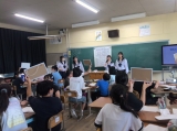 6月6日(金)に、3年生国際理解コースの生徒が、津島市立南小学校で出前授業を行いました。 |